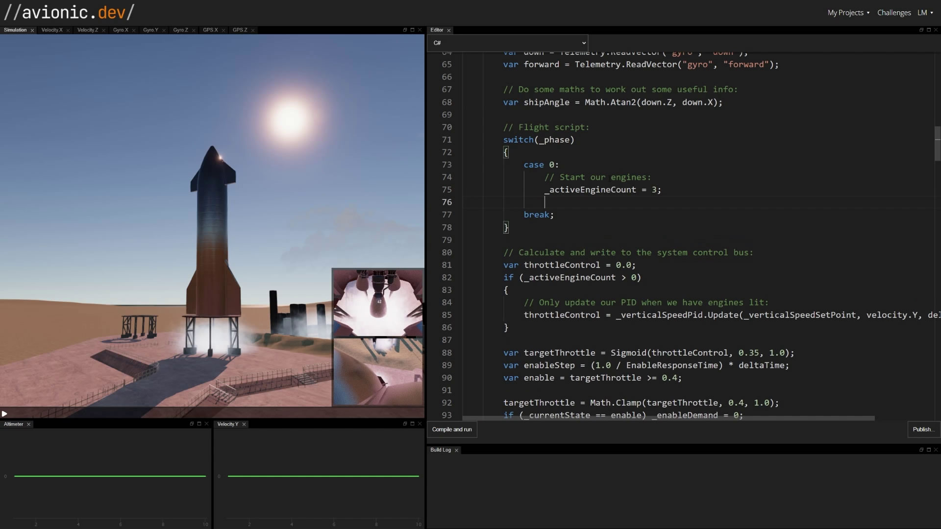 Avionic.dev is a browser based sandbox programming game where you write avionics software to fly spacecraft!